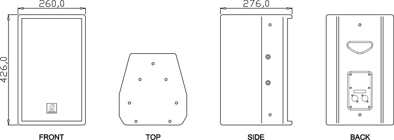 箱體外形 Physical 梯形 箱體材料 Enclosure Material 15厘厚樺木夾板 箱體網(wǎng)面 Enclosure Material 模壓鋼制圓形孔網(wǎng)面,內(nèi)貼專業(yè)防水透氣爆破棉 表面漆 Finish 水性環(huán)保多層耐刮、耐腐蝕、防水油漆 吊裝點 Handing Position 18個M8吊掛螺絲孔位 支撐座 Pole Mount 底部一個Φ35mm支撐座 |